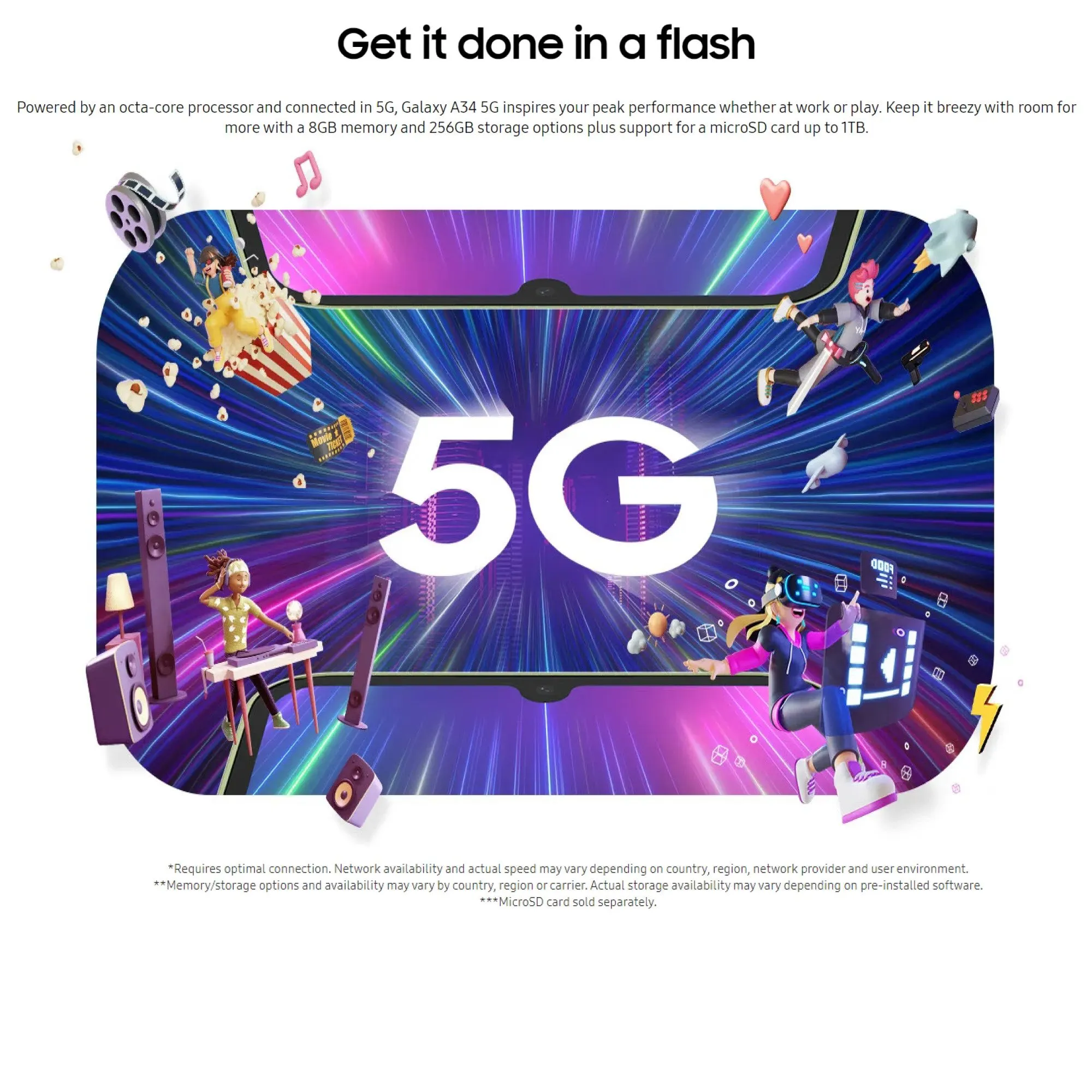 三星Galaxy A34 5G 128GB Rom+8GB Ram/1年本地三星保修(免费:钢化玻璃+后盖)