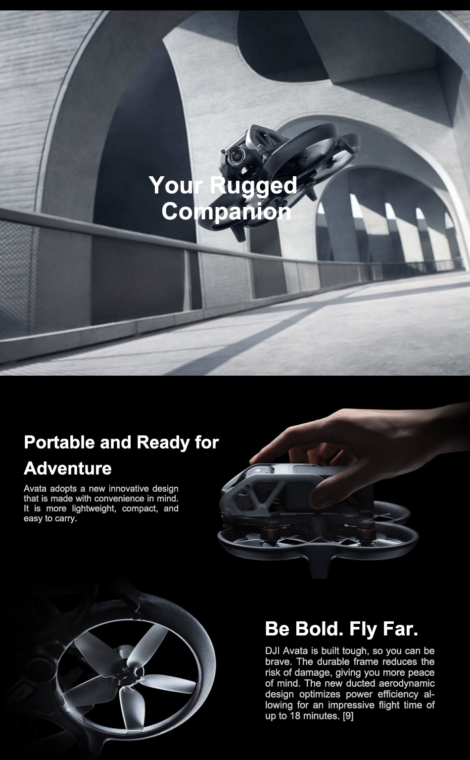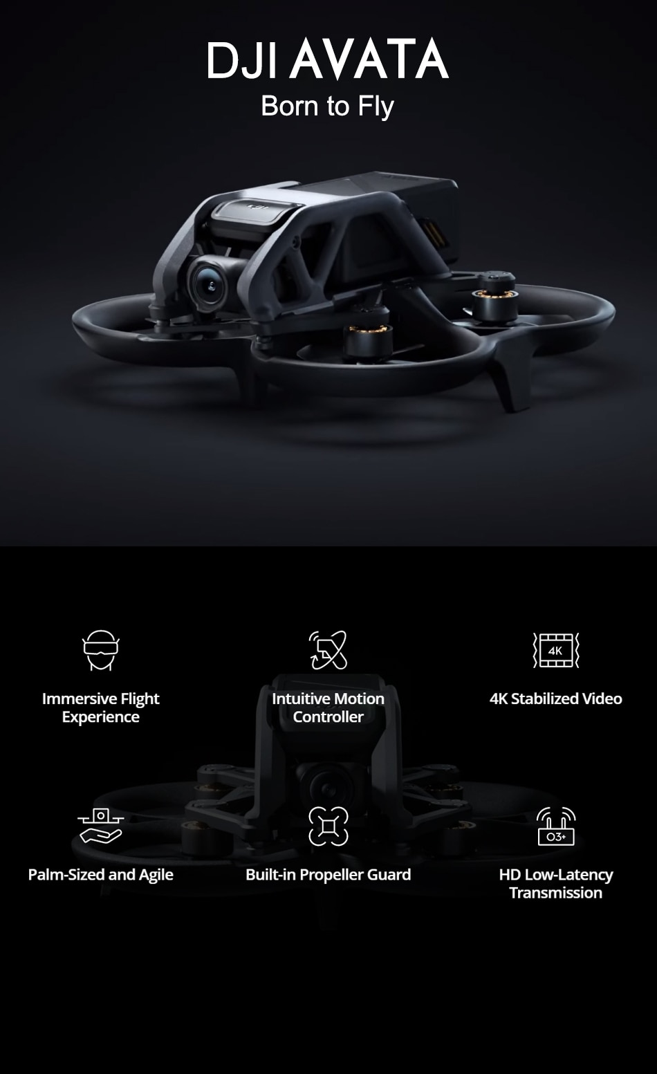 DJI Avata Pro-View Combo: Includes DJI 2 and DJI Motion Controller, which can realize intuitive control by hand and head movements to provide an immersive sensory experience with flexibility and ease.