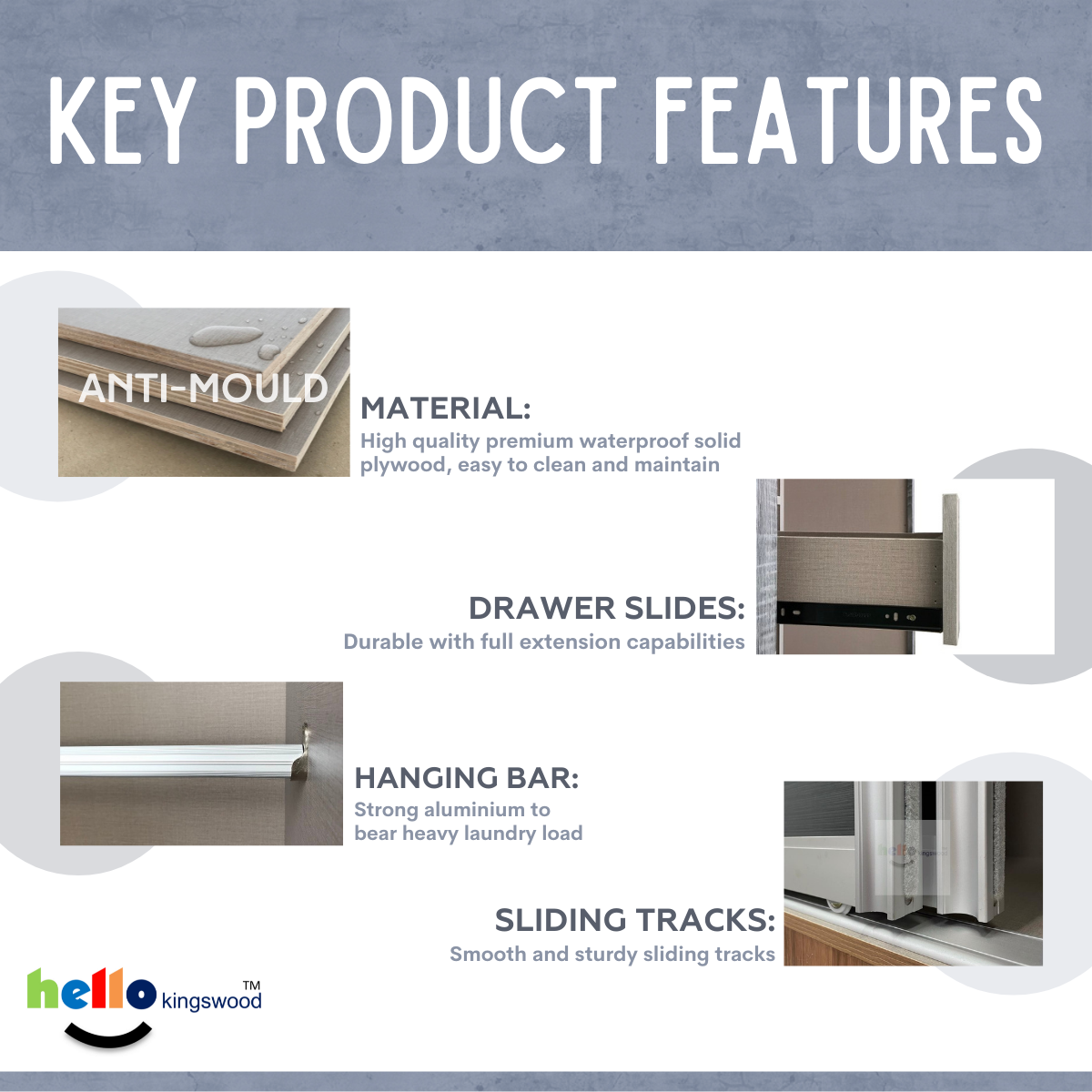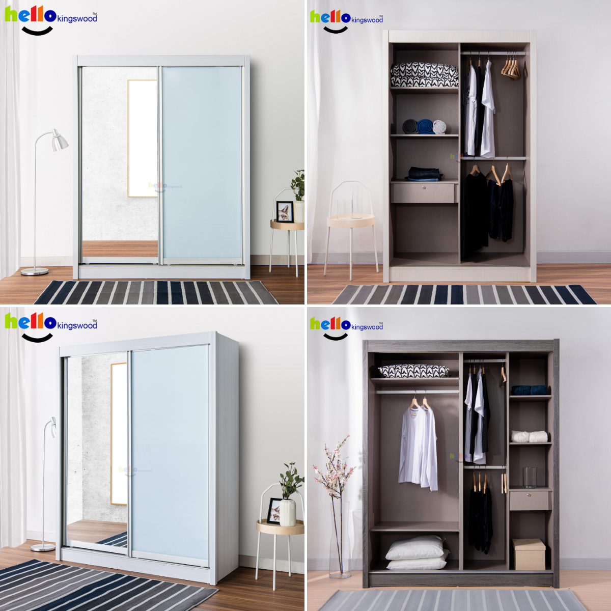 [Kingswood]幻影4推拉门衣柜,4|4.5|5|5.5|6英尺,实心胶合板,包括12个月保修,有9种颜色可供选择
